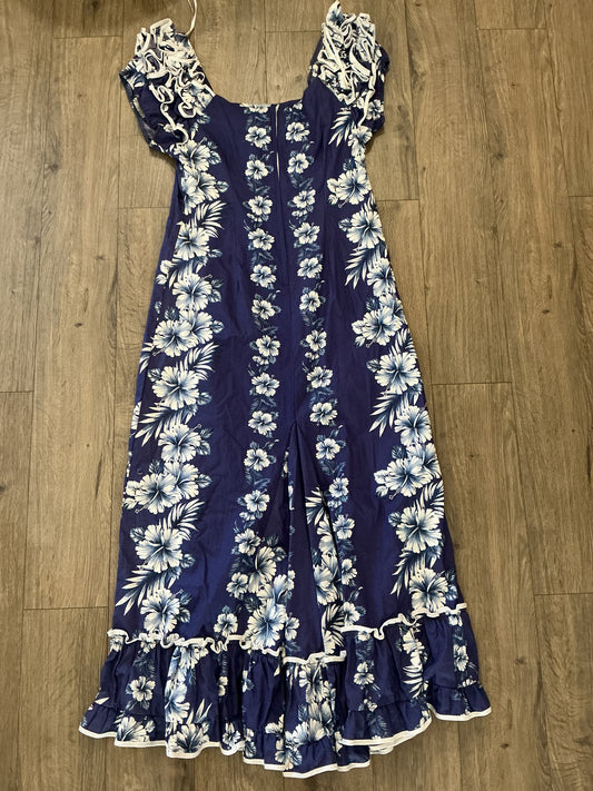 NWOT MAHALO Hawaii Vintage Long Ruffle Dress, Navy Blue Large