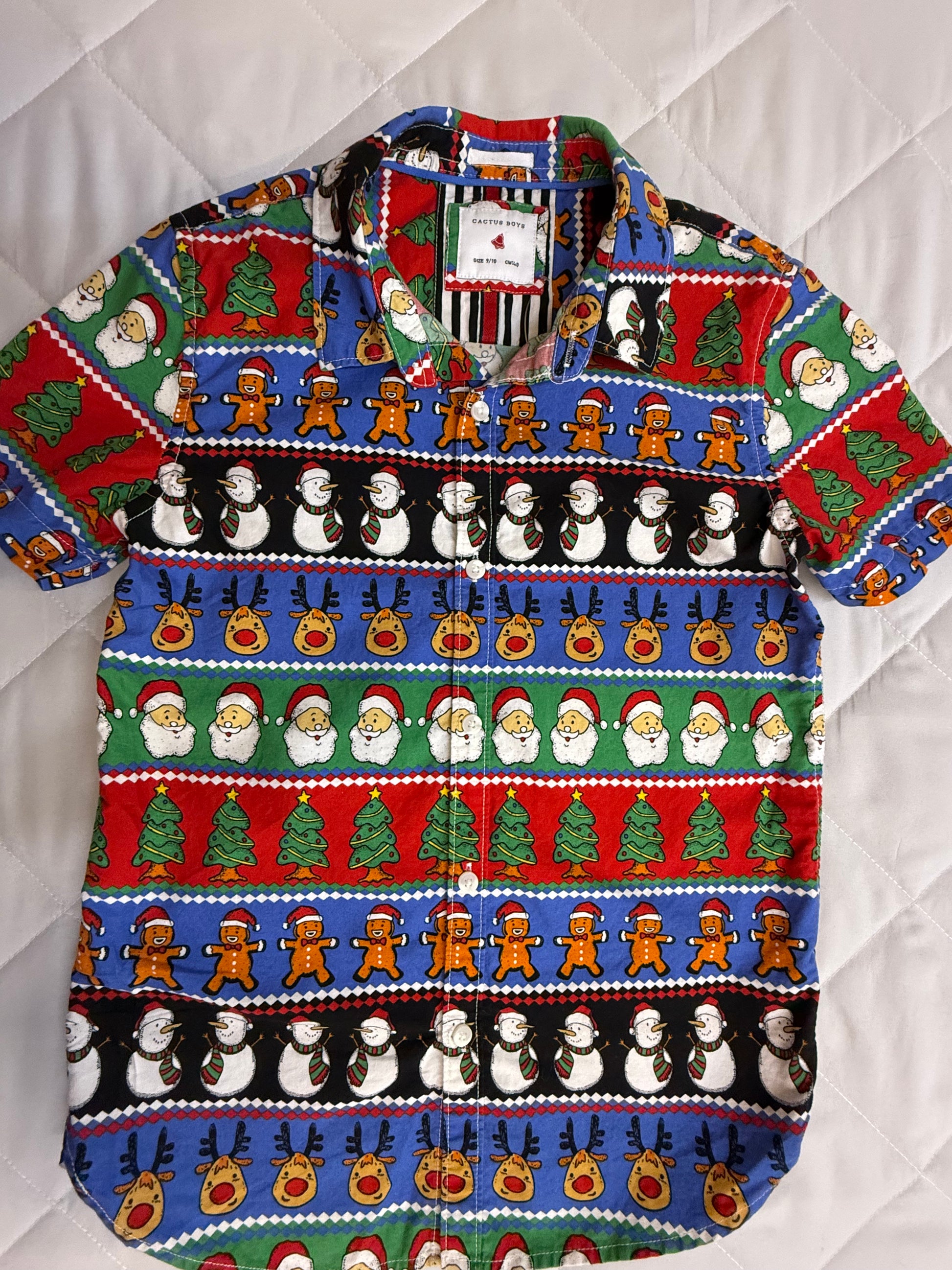Christmas button down collared shirt.